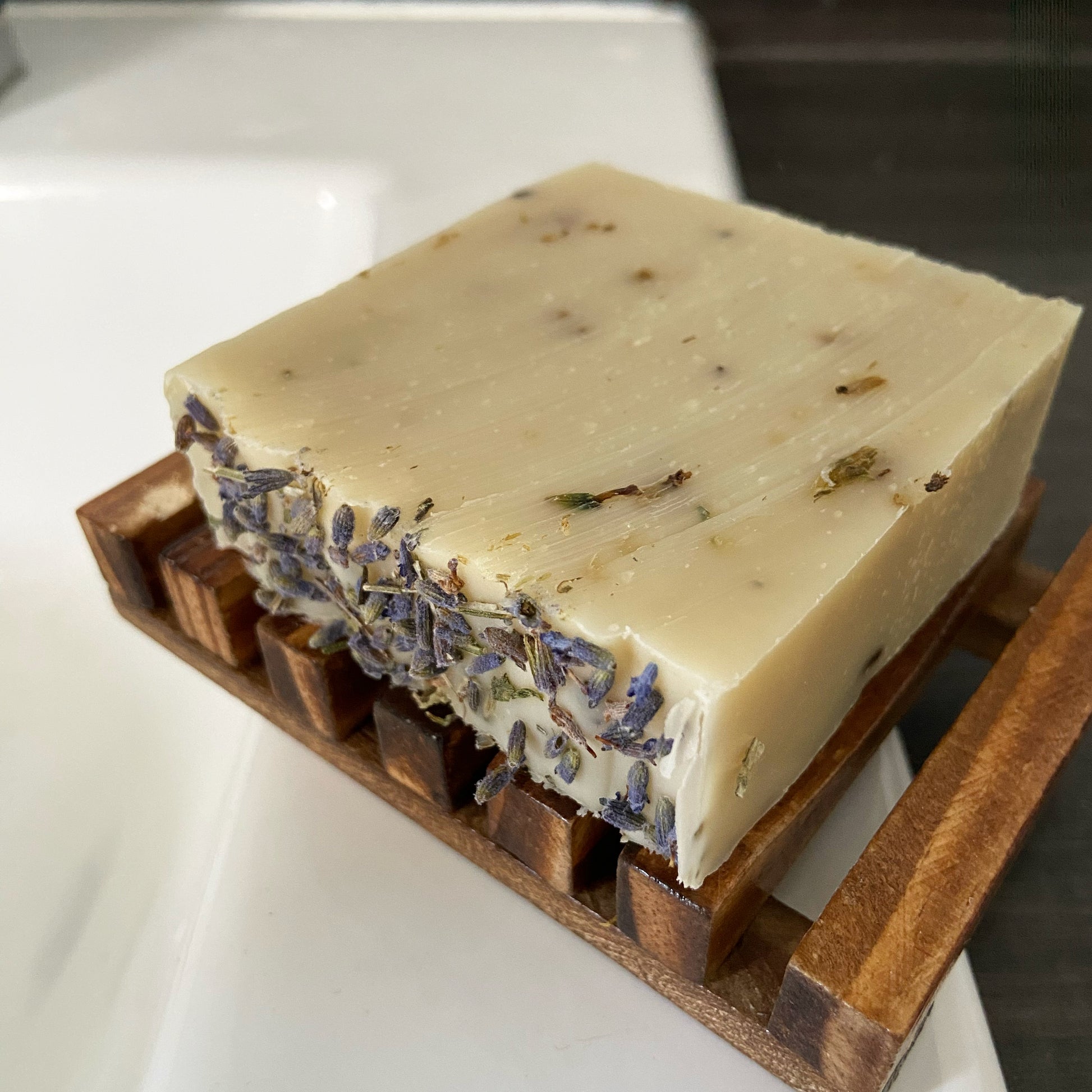 The therapeutic lavender scent with organic shea butter leaves your skin feeling soft and nourished. Chopped lavender buds incorporated throughout the soap provide gentle exfoliation and magnify the relaxing aroma. The creamy and bubbly lather rinses away clean leaving your skin feeling refreshed and smelling great.
